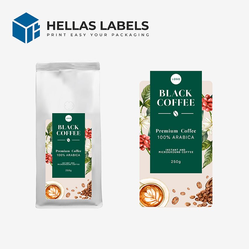 Προσαρμοσμένες ετικέτες καφέ τόσο μοναδικές όσο ο καφές σας! Οι ετικέτες βοηθούν στην προβολή της επωνυμίας σας και στην επικοινωνία με το τι να περιμένετε από τους κόκκους καφέ μέσα στη σακούλα. Μια προσαρμοσμένη τυπωμένη ετικέτα καφέ δελεάζει τους καταναλωτές με την υπόσχεση ενός νόστιμου φλιτζανιού που θα ενθουσιάσει τις αισθήσεις τους. Επωφεληθείτε από τις πρωτότυπες επιλογές μας. Με ελάχιστη ποσότητα παραγγελίας, 50 τεμάχια όλοι μπορούν να απολαμβάνουν τις υψηλότερης ποιότητας ετικέτες συσκευασίας καφέ.
