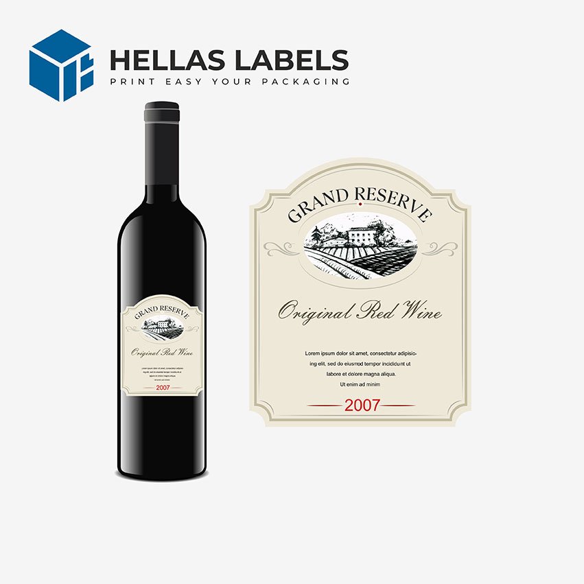 Προσαρμοσμένες ετικέτες για μπουκάλια κρασιού τόσο μοναδικές όσο το κρασί σας! Οι ετικέτες βοηθούν στην προβολή της επωνυμίας σας και στην επικοινωνία με το τι να περιμένετε από το κρασί μέσα στο μπουκάλι. Μια προσαρμοσμένη τυπωμένη ετικέτα κρασιοό δελεάζει τους καταναλωτές με την υπόσχεση ενός αρωματικού κρασιού που θα ενθουσιάσει τις αισθήσεις τους. Επωφεληθείτε από τις πρωτότυπες επιλογές μας. Με ελάχιστη ποσότητα παραγγελίας, 50 τεμάχια όλοι μπορούν να απολαμβάνουν τις υψηλότερης ποιότητας ετικέτες συσκευασίας κρασιού.